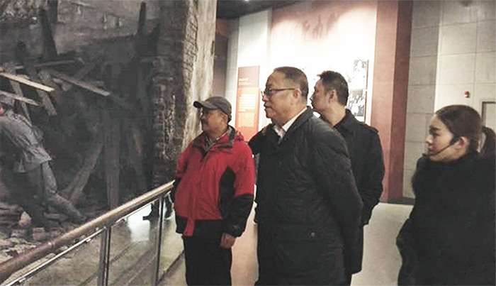 何譽(yù)軍(左一)陪同全國(guó)政協(xié)副主席、民革中央常務(wù)副主席鄭建邦(左二)參觀湖南抗戰(zhàn)紀(jì)念館。