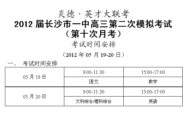 下一篇:炎德英才大聯(lián)考長沙市一中2012屆高三第三次模擬(一中壓軸卷)考試時間和范圍