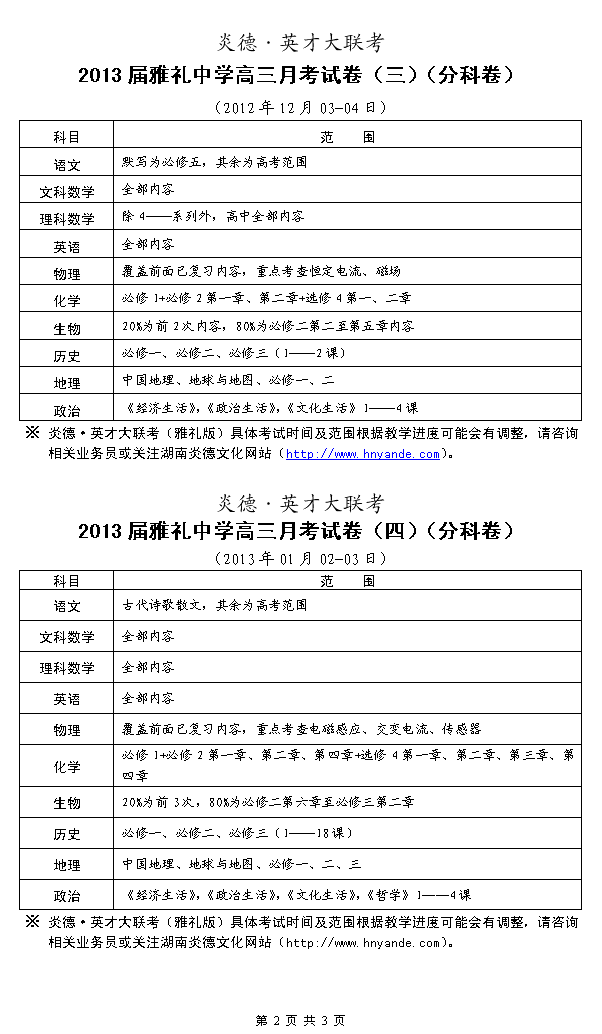 來(lái)源:炎德文化點(diǎn)擊:2012-09-11 14:46:11收藏本文當(dāng)前位置:考試范圍 雅禮中學(xué) 高三 正文