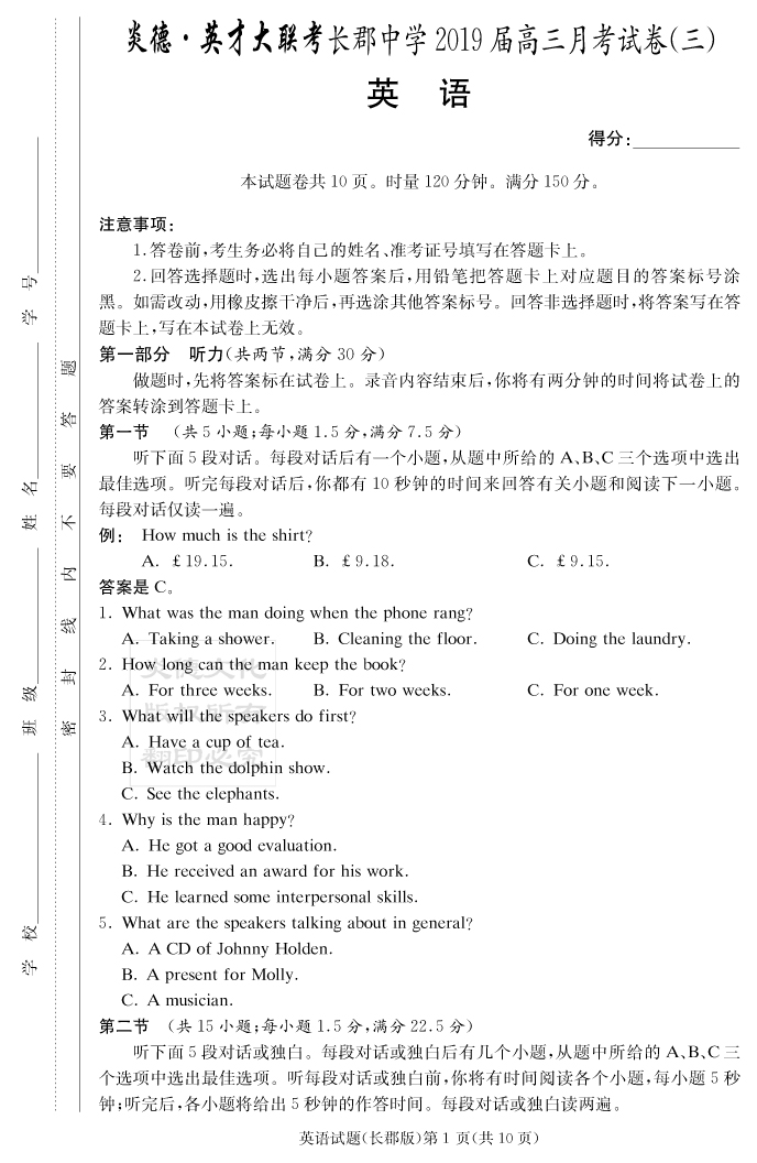 | 資源類別: | 名校月考 | |